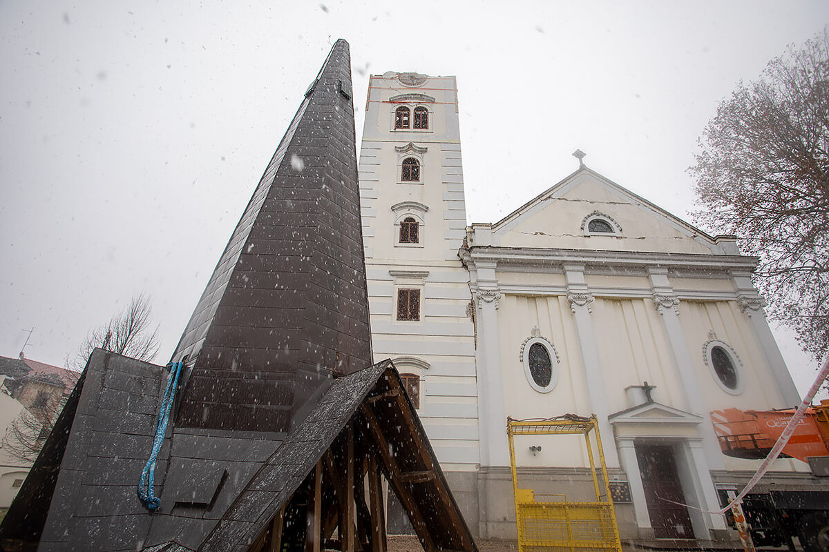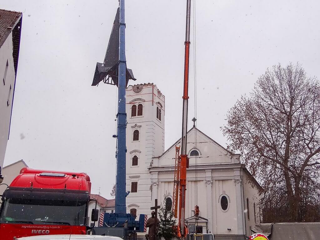 [FOTO] Skinut krov u potresu teško oštećenog zvonika sisačke katedrale
