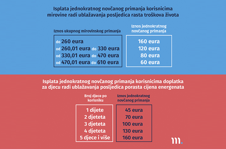 Vrijedi podsjetiti da je Vlada proteklog četvrtka donijela novu odluku o isplati jednokratnog dodatka umirovljenicima, koji će biti isplaćen u travnju, osim za primatelje inozemnih mirovina i one koji su pravo na mirovinu ostvarili u travnju. Njima će dodatak u visini od 60 do 160 eura biti isplaćen u srpnju, a više detalja možete pročitati ovdje.