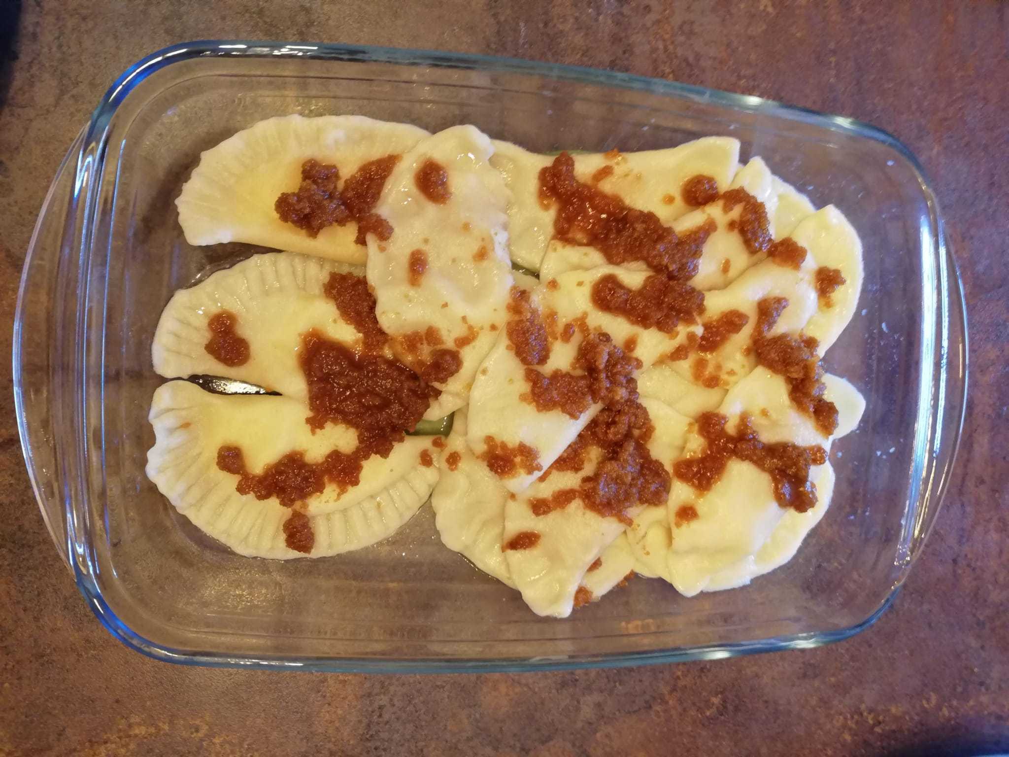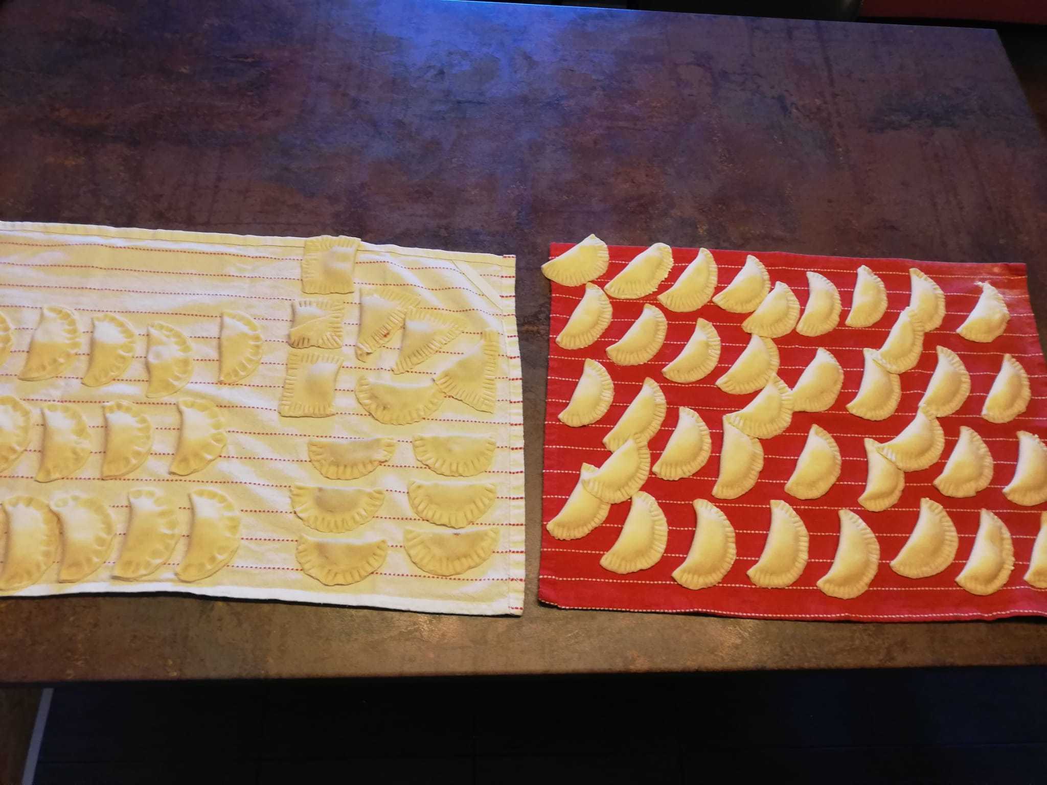 Nakon što ste i ovo napravili, u sredinu svakog kruga stavite željeno punjenje, a onda jedan rub preklopite preko drugog i stisnite ih vilicom ili prstom. Tako napravljeni se kuhaju u vrućoj vodi dok ne omekšaju. Na kraju se mogu u tavici prepeći krušne mrvice ili se mogu pomiješati mak i šećer u koje se onda uvaljaju tačkrle. Tko voli po svemu može staviti i vrhnje. Dobar tek!