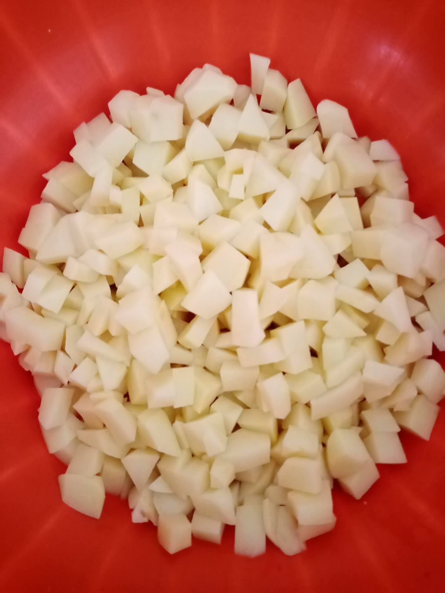 - Krumpir očistiti, narezati na kockice, uliti vodu da bude dva prsta iznad krumpira i staviti kuhati