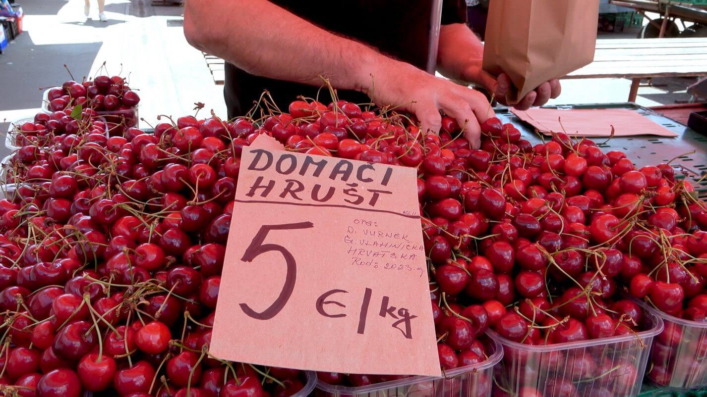 Tržnica Kvatrić se može pohvaliti svojom dobrom lokacijom, ali ne i cijenama. Naime, za trešnje stare sorte hrušt morat ćete izdvojiti gotovo sedam eura za kilogram. Donosimo i ostale cijene voća i povrća, ali i cvijeća.