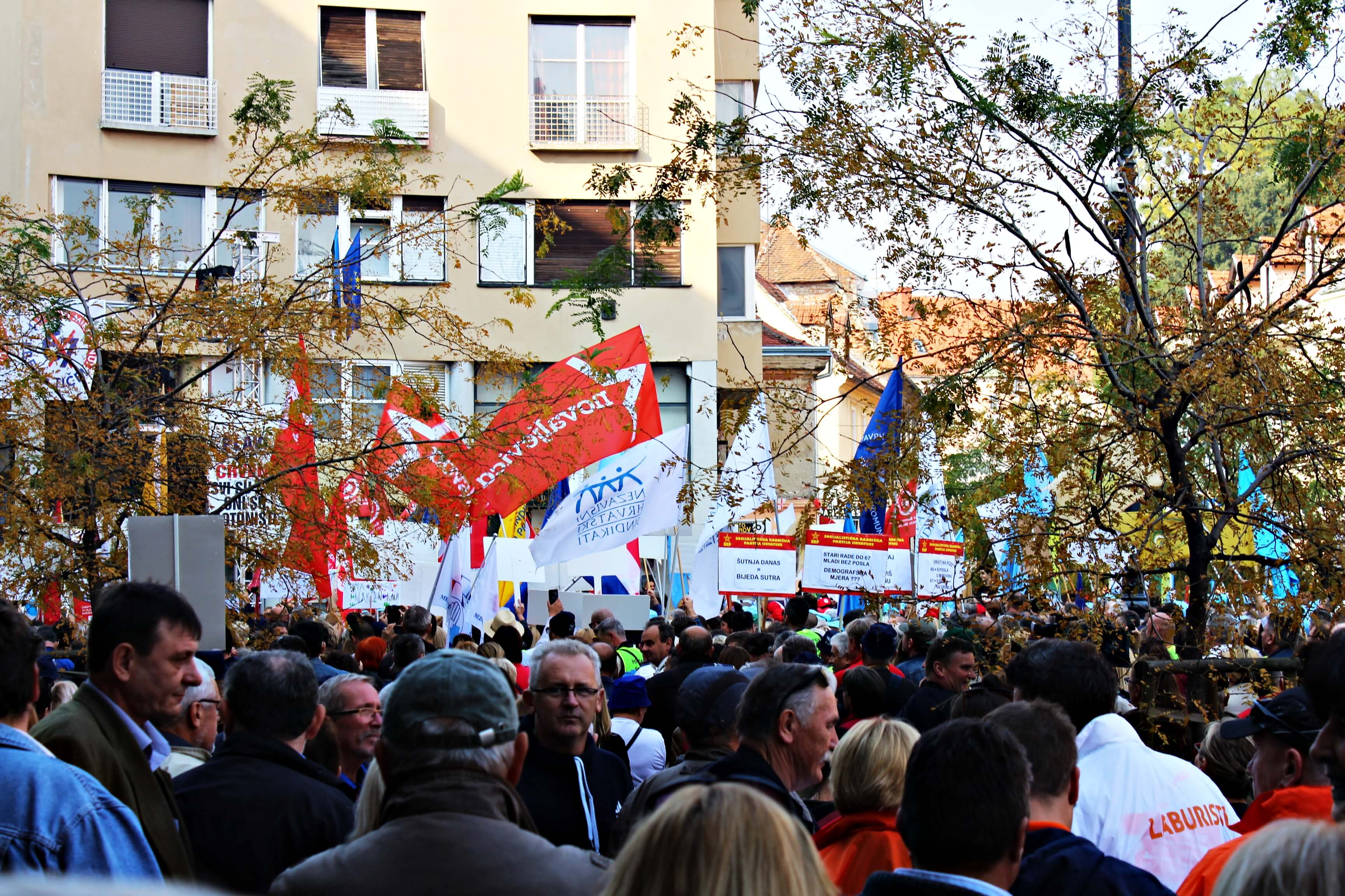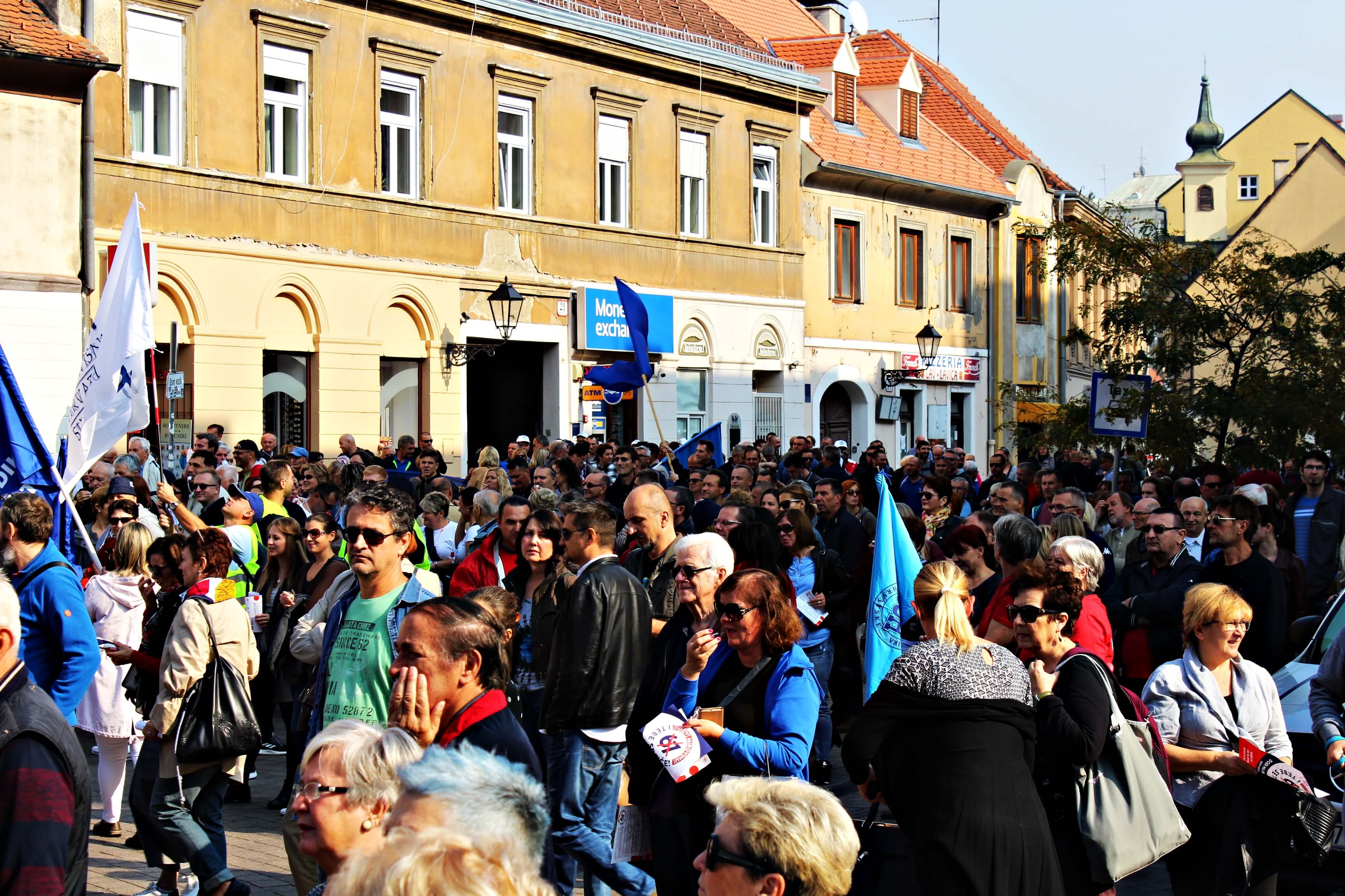 Današnji prosvjed na Europskom trgu je trajao gotovo dva sata, a nekoliko tisuća građana je sindikatima dalo podršku u rušenju mirovinske reforme.