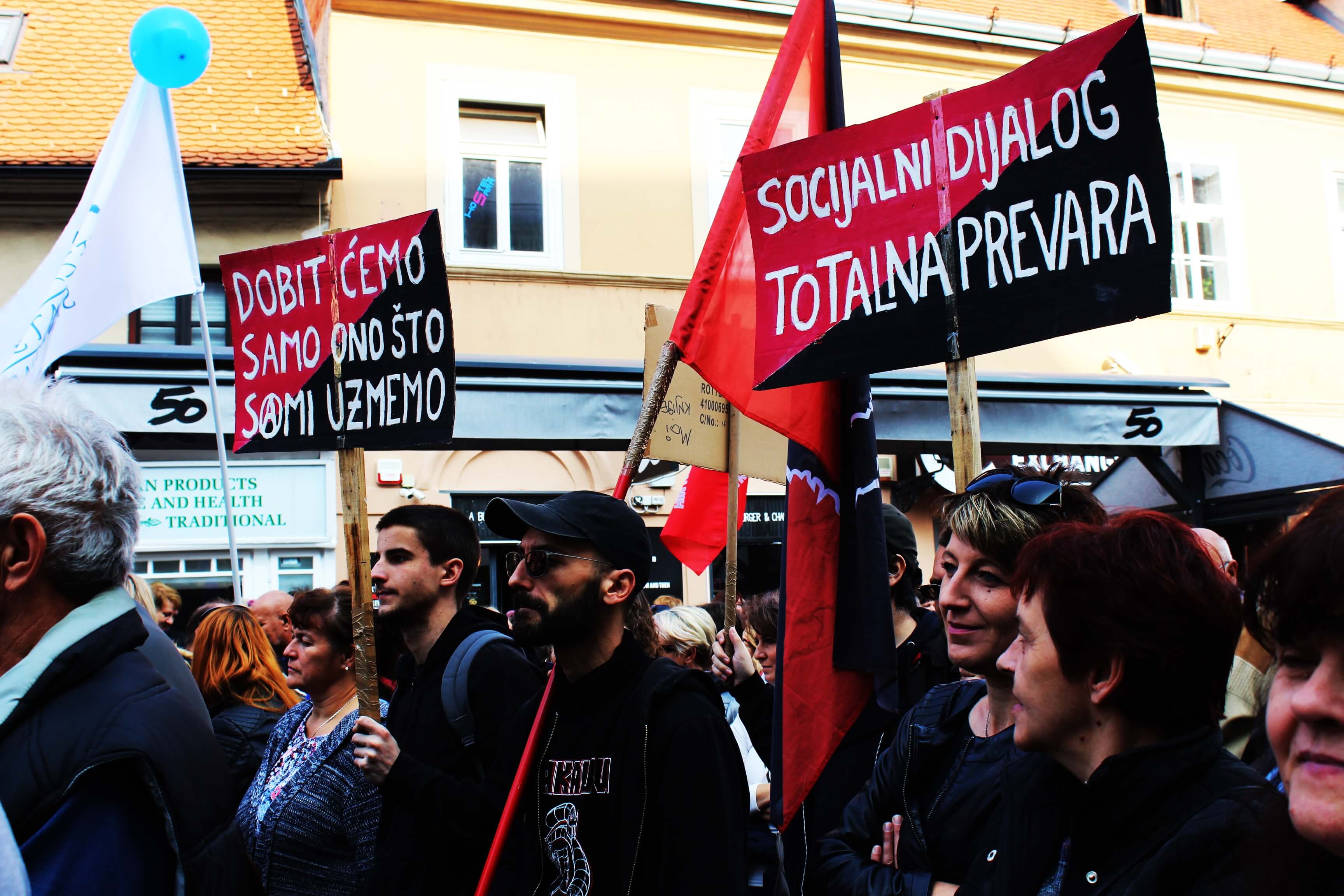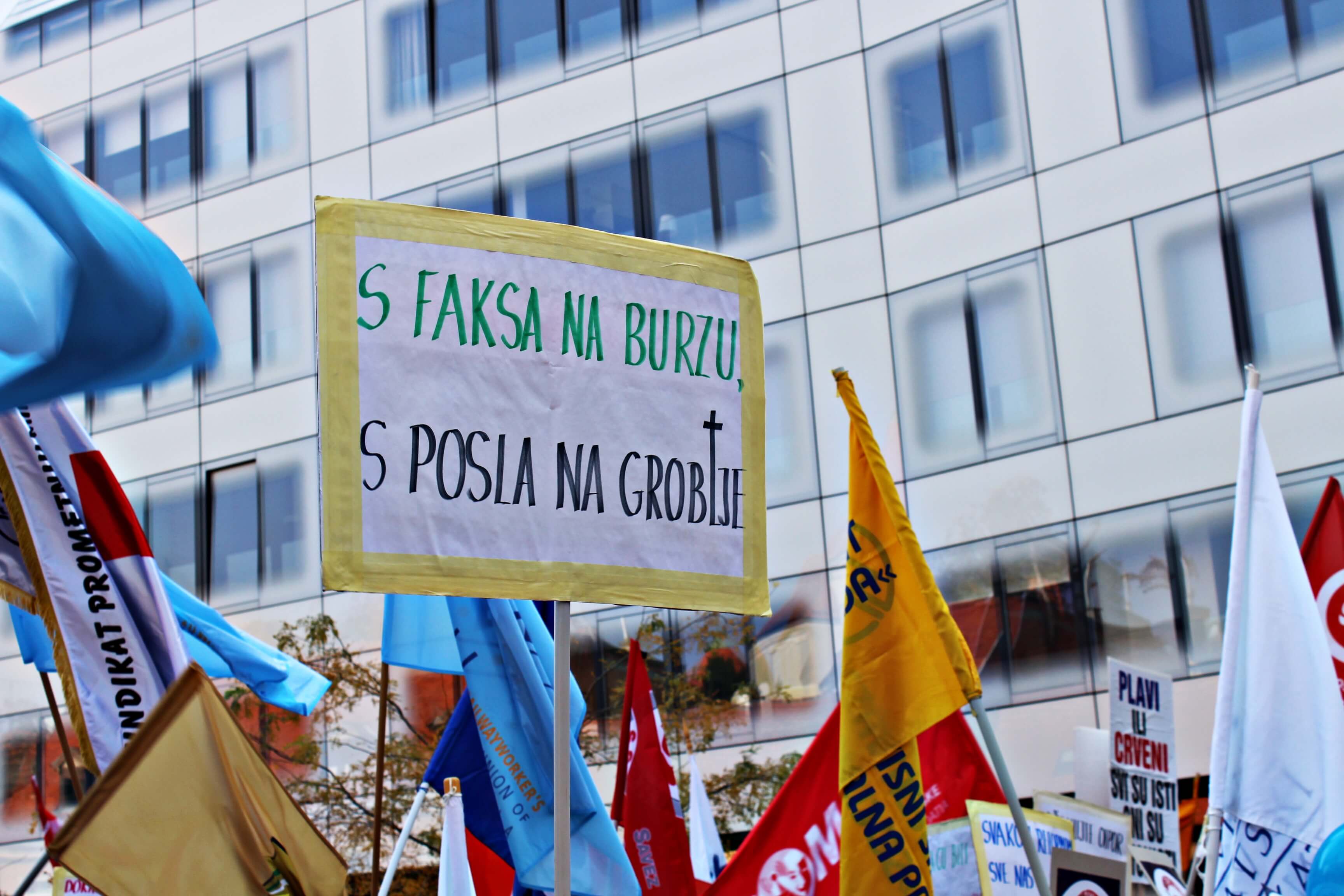 Naoružani transparentima na kojima je pisalo “S faksa na burzu, s posla na groblje”, “U foteljama možemo do stote”, “Srami se protunarodna vlado”, “Naša država nas treba mrtve”, “Čekate da pocrkavamo” i brojnim drugim poslali su snažnu poruku Vladi.