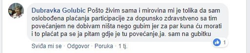 Primjerice, penzioner samac kojemu je mirovina do sada bila 1.900 kuna imao je pravo na besplatno dopunsko. Međutim, nakon rujanskog povećanja od 2,7 posto, njegova će primanja biti 51 kunu veća. Time će za samo 12 kuna prijeći limit te će morati plaćati dopunsko zdravstveno. Drugim riječima, država će mu dati 51 kunu kroz veću mirovinu, ali iz džepa će mu svakoga mjeseca izbiti 70 kuna za uslugu koju do sada nije morao plaćati. Povećanje mirovine za njega tako predstavlja gubitak.