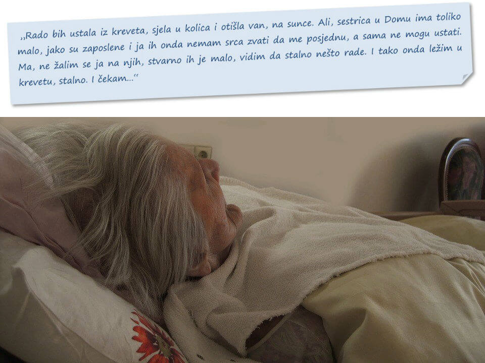 “U jednom od domova u kojima je veći broj korisnika smješten na stacionaru, rečeno nam je da se radi o osobama koji su na umoru, koje ništa ne zanima i kojima stoga ništa, osim prehrane i njege, ne treba ni ponuditi!”