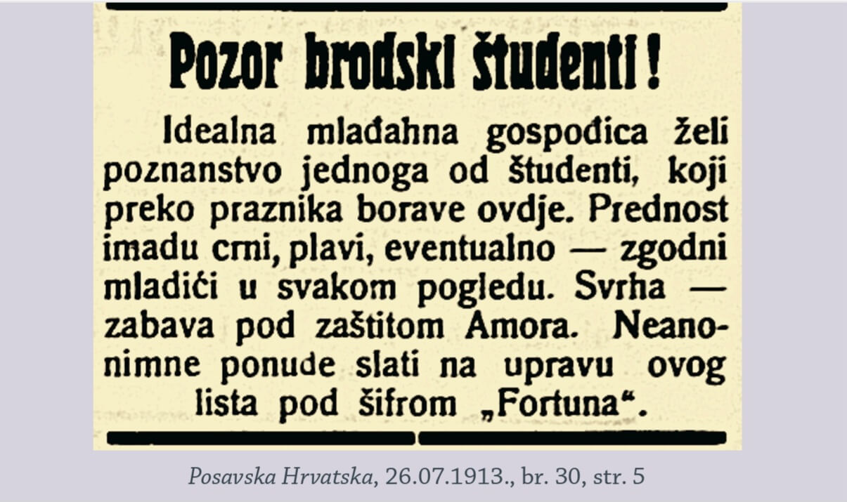 U Državnom arhivu u Slavonskom Brodu otvorena je izložba novinskih oglasa pod nazivom ‘Sve dam – samo da prodam!’ Riječ je o izabranim oglasima iz dugog vremenskog razdoblja koji pokazuju neke životne navike, obrasce ponašanja, ali i stereotipe koji bi danas izazivali osudu. Izložba je besplatna i otvorena do 30. rujna.