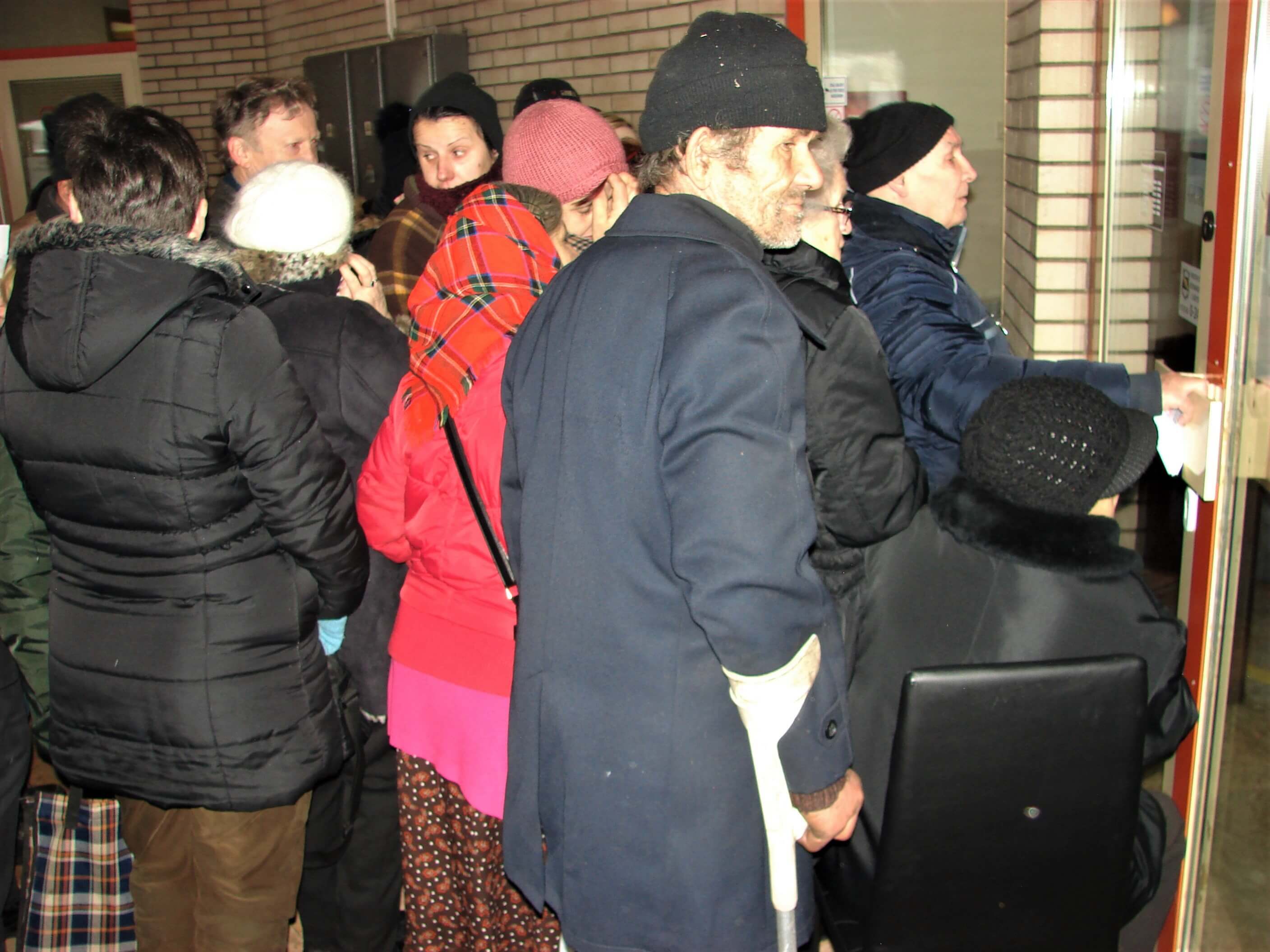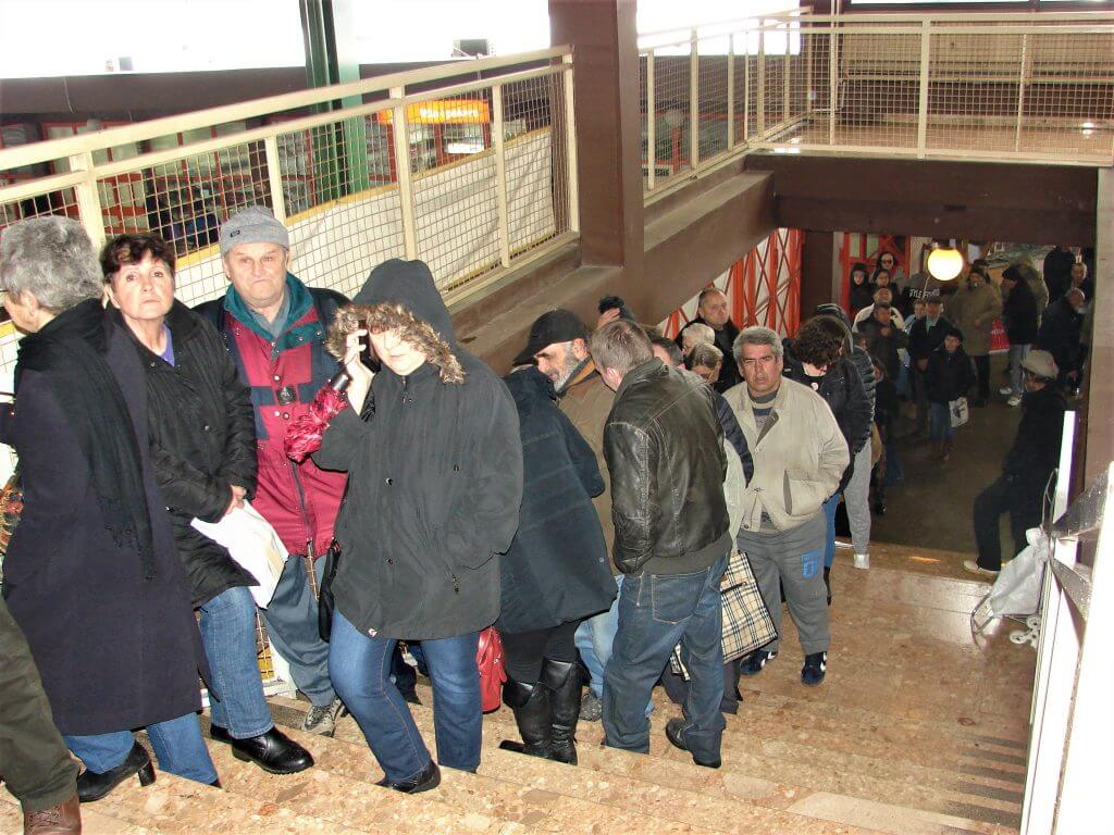 Gužva na sisačkoj tržnici od ranog jutra, ali ne zbog voća i povrća, nego uskrsnica. Stotine umirovljenika i nezaposlenih formirale su red već od 7 sati, iako je podjela prvog dana isplate zakazana tek od devet. Kolona se protezala od vanjskog ulaza na tržnicu sve do kata na kojem je smještena gradska blagajna. Satima su stajali na hladnoći, a djelomice i na kiši za iznose od sto do 300 kuna, koliko je kome već, ovisno o cenzusu, osigurao Grad Sisak.