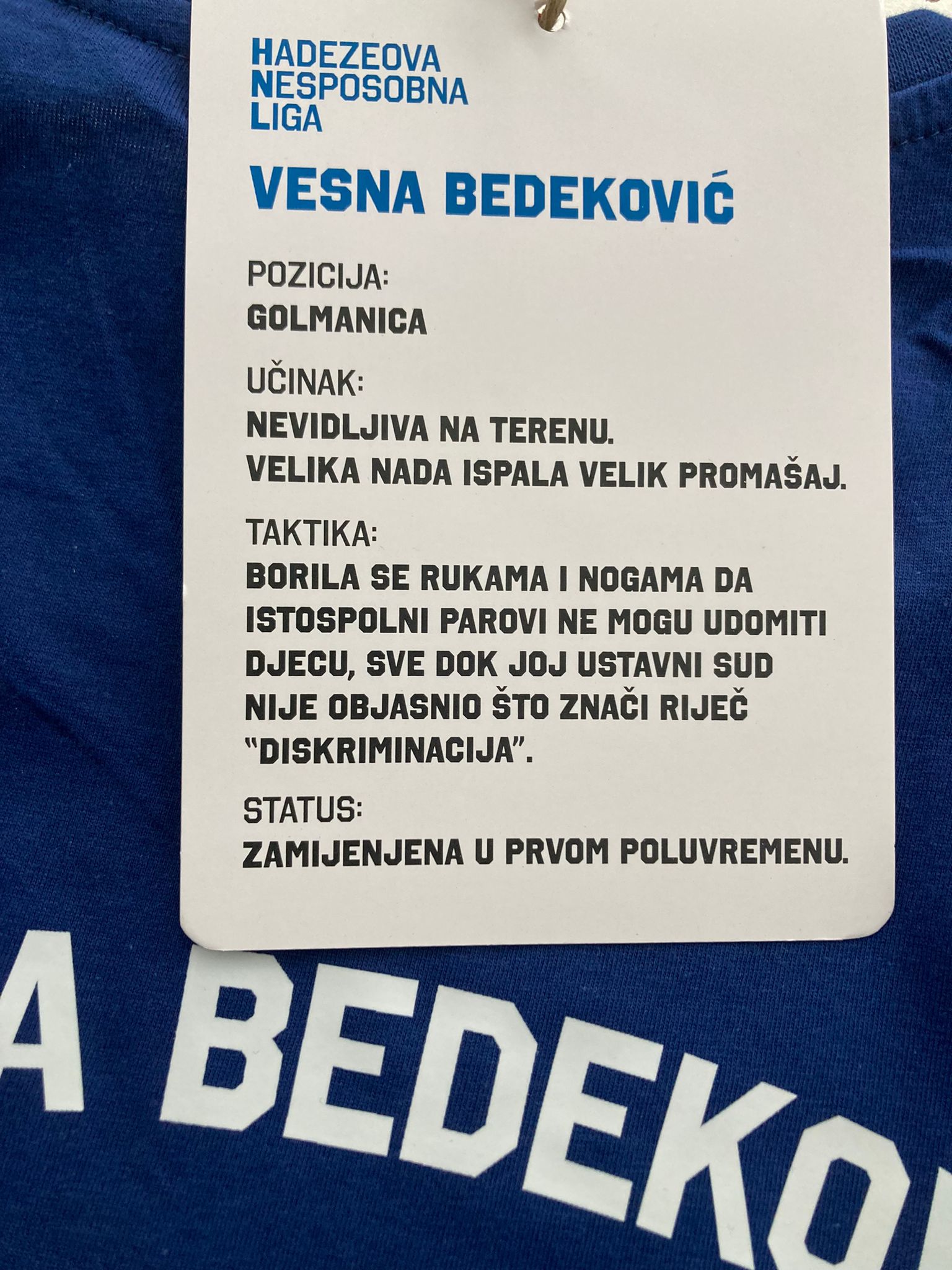 Uoči glasanja o novom ministru Alenu Ružiću, SDP-ovci su postavili instalaciju improviziranog nogometnog igrališta s ‘Plenkovićevim igračima’ u dresovima. Svaki dres nosi ime bivšeg ministra i ‘rezultat’ njegova mandata. Cilj ovog performansa bio je upozoriti na činjenicu da se postava stalno mijenja, ali igra ostaje ista, kako tvrdi SDP, bez strategije i bez pobjede. Kako to izgleda na terenu’ pogledajte u galeriji.
