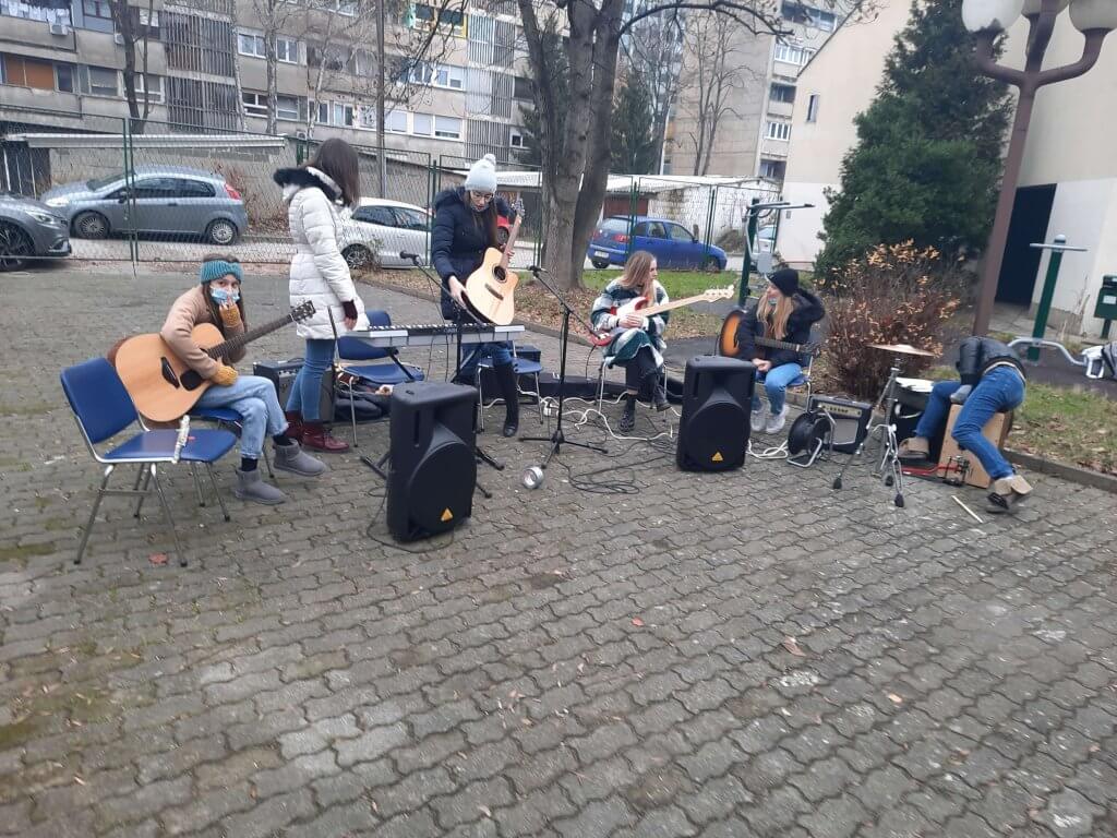 Božićni duh ispunjen veseljem i pjesmom u Dom za starije i nemoćne osobe na zagrebačkom Trnju donijelo je jučer šestero tinejdžerica okupljenih u Božićni El bend. Zasvirali su i zapjevali oduševljenim korisnicima u dvorištu ustanove. Neki umirovljenici su zaplesali, dok su drugi sve budno pratili sa svojih balkona, a s njima je bio i novinar našeg sestrinskog portala Srednja.hr.