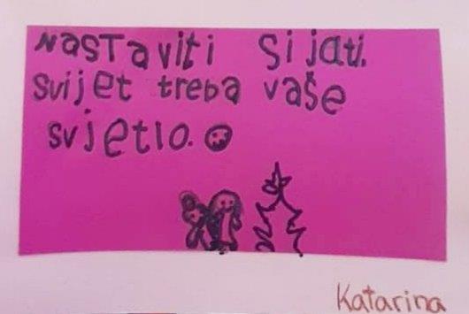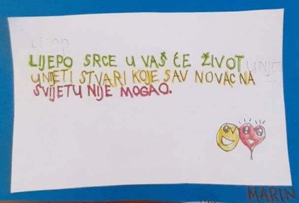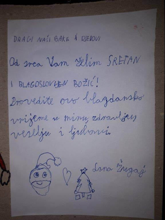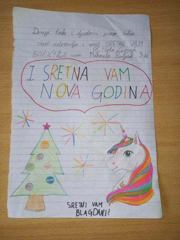 Zahvaljujući akciji Sindikata hrvatskih učitelja, korisnicima umirovljeničkih domova stiglo je na tisuće blagdanskih čestitaka. Poruke ohrabrenja, ljubavi i dobrih želja u vrijeme pandemije i izolacije učenici su iz škola diljem Hrvatske ispisali srcem te ih obogatili crtežima.