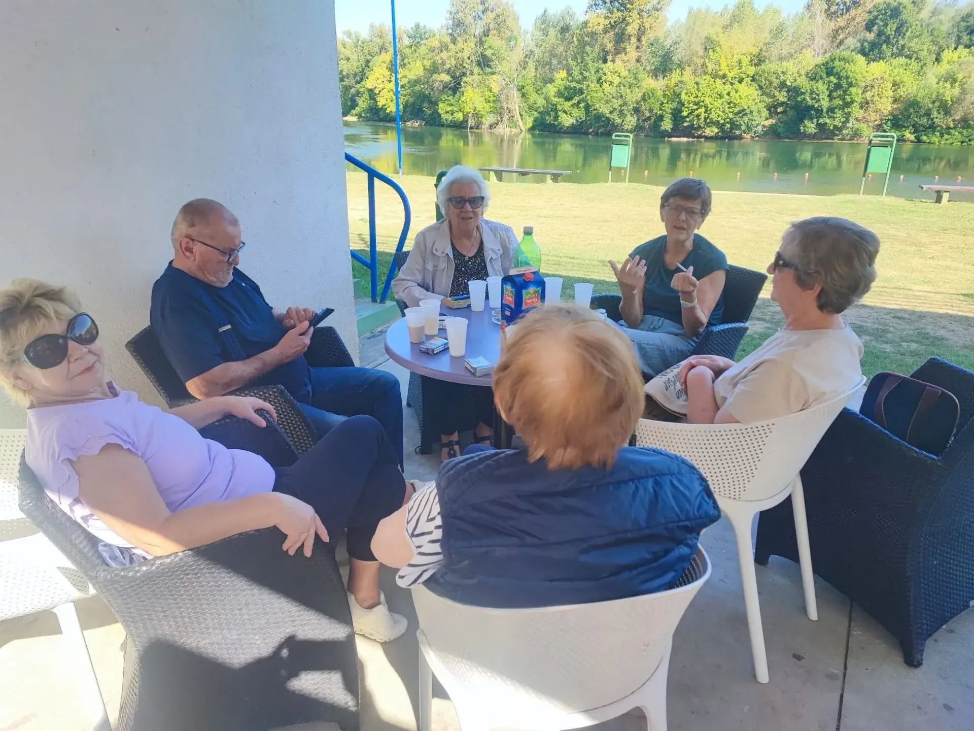 Umirovljenici iz petrinjskog Doma za starije uživali su na poludnevnom izletu na kupalištu kraj rijeke Kupe. Grupa od osmero umirovljenika odšetala je do kupališta, dok su druge umirovljenike iz Doma prevezli kombijem kako bi također uživali u sunčanom danu, kavi i druženju na otvorenom.
