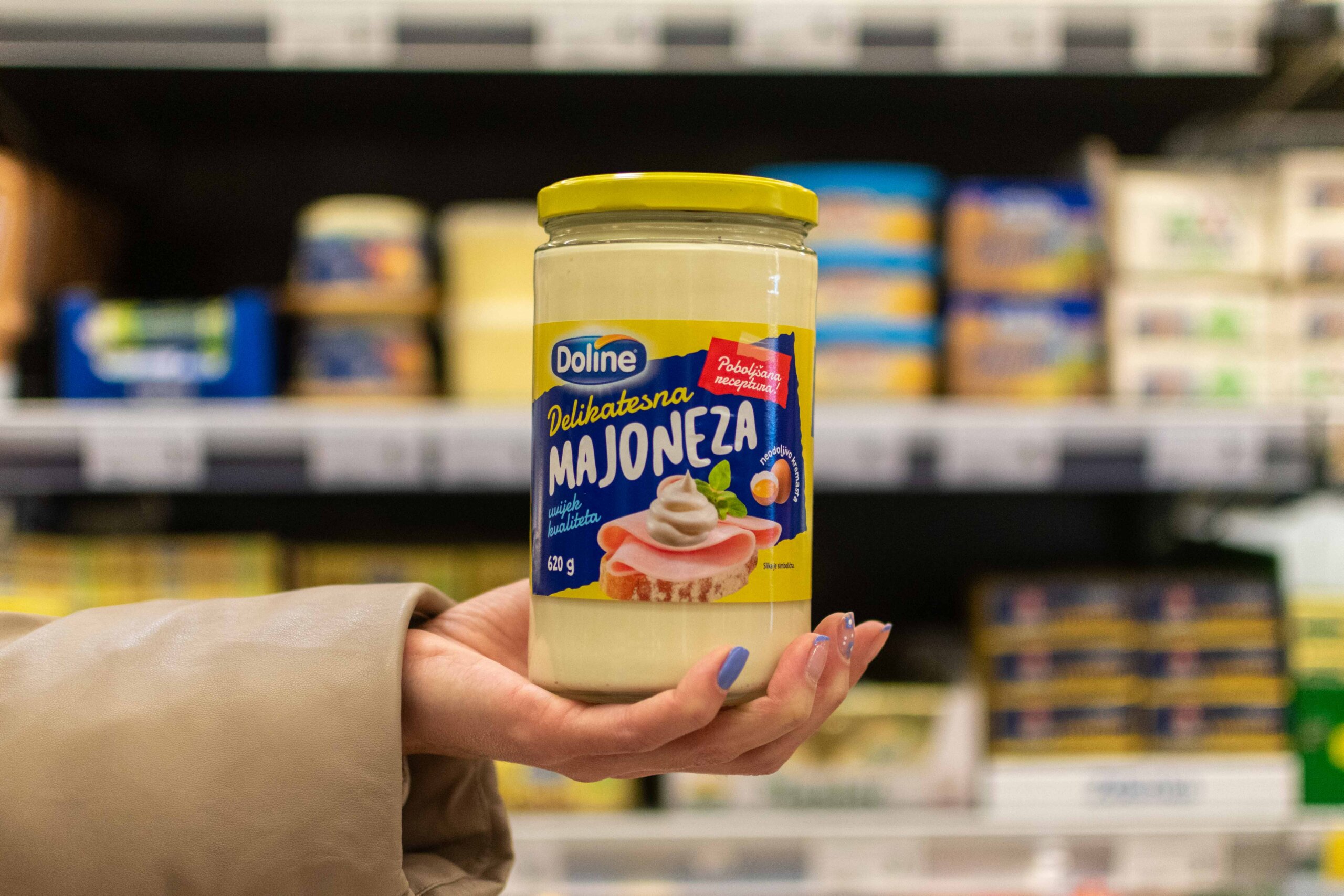 Hladnjak smo odlučili opremiti i Doline delikatesnom majonezom od 620 grama po cijeni od 2,38 €. Od mesnih proizvoda odabrali smo Pik Vrbovec tirolsku kobasicu. Za 400 grama ove kobasice izdvojili smo 3,05 €. Pažnju nam je privukao i Frozy smrznuti lignjun kojeg smo platili 3,50 € za 400 grama.