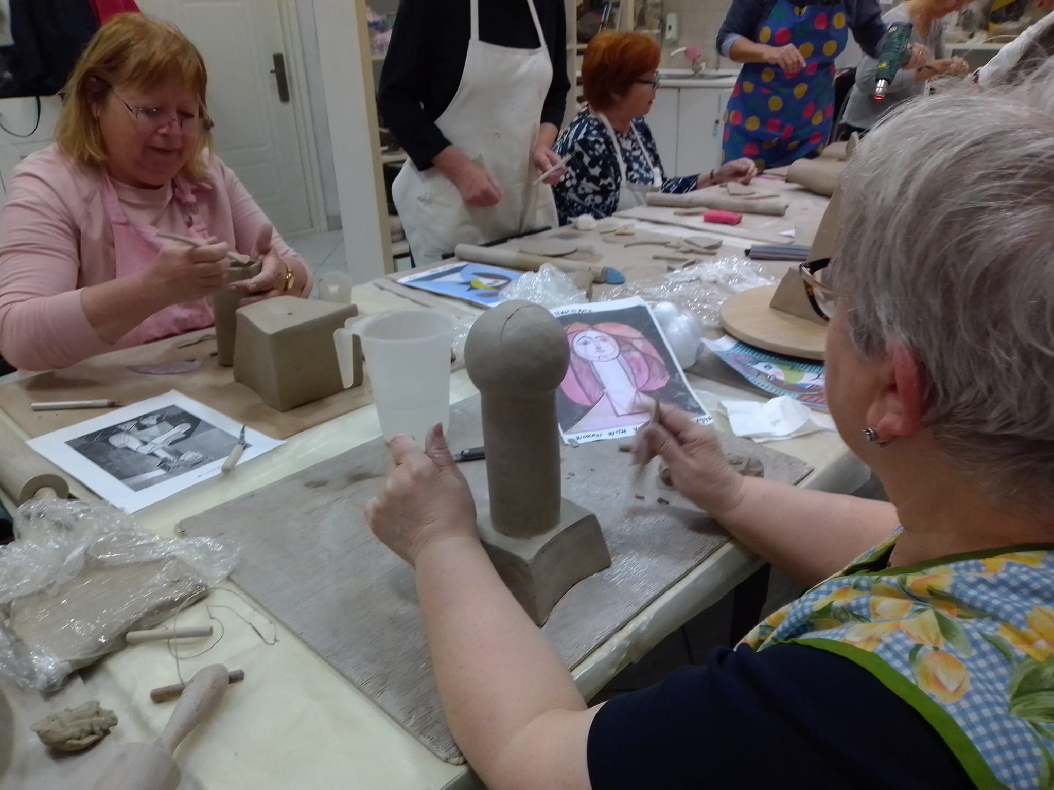 – U grupi nam je uglavnom 10 do 12 osoba i ne dođu uvijek svi jer neki od njih idu u toplice. Kroz godinu pokušavamo imati neke teme i tehnike. Ovdje ne pokušavamo raditi samo klasične predmete poput tanjura, već ih želimo malo potaknuti na razmišljanje. Ovog puta su dobili zadatak da na temelju jedne Picassove slike žene naprave skulpturu. Tada u nekim promišljanjima dolaze od zaključka kako napraviti određeni dio skulpture, kako iskonstruirati neki dio, odnosno izmisliti zadnji dio slike koji se ne vidi na slici. To je malo zahtjevniji zadatak koji ih nakon prvotnog šoka tjera na razmišljanje nekoliko puta, pojasnio je Igor Fabris.