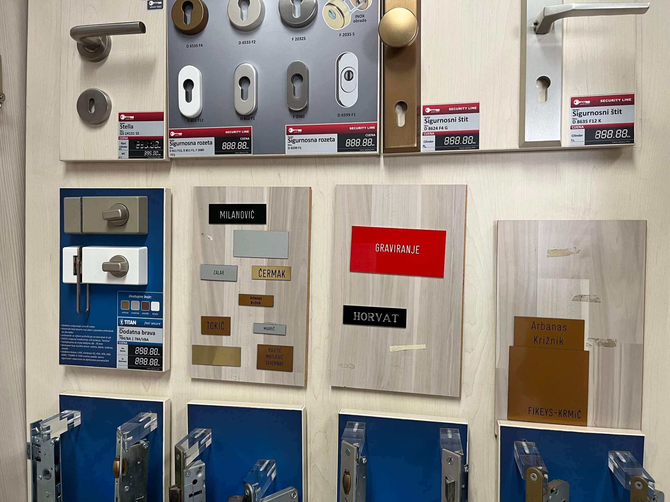 Osim izradom ključeva, bave se graviranjem. Imaju natpise pločica, kvake, sefove, nosače za skije, daljinski za garaže, svu bravarsku robu koja se može ugraditi, popraviti. Izrađuju i ključeve za automobile, kuke za automobile, što ljudi traže kada izgube ključeve. Bravar Bruno otkrio nam je da ponekad mora i profilirati ljude. Recimo, ako mu je netko sumnjiv jer traži da se zamijeni kvaka u stanu.