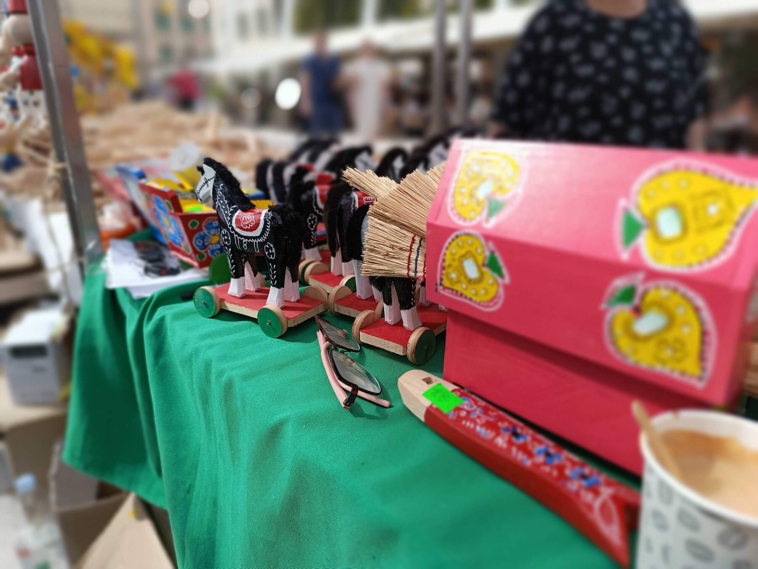 – Kad biste samo ovog drvenog konjića radili, imate pred sobom posla otprilike dva sata. Prvo ide podloga, a zatim boja tako da on dobije sjaj, a to su uljne boje na vodenoj bazi. Zatim bojate crvenom bojom nakon čega po nanesenoj crnoj boji morate napraviti šare. Ubrzo nakon toga iscrtavate flomasterom pa slijedi lijepljenje krzna, a potom i daščica. Ni tad niste gotovi jer morate napraviti ove kotačiće tako da je tu popriličan obujam posla, pojasnila je gospođa Kumić.