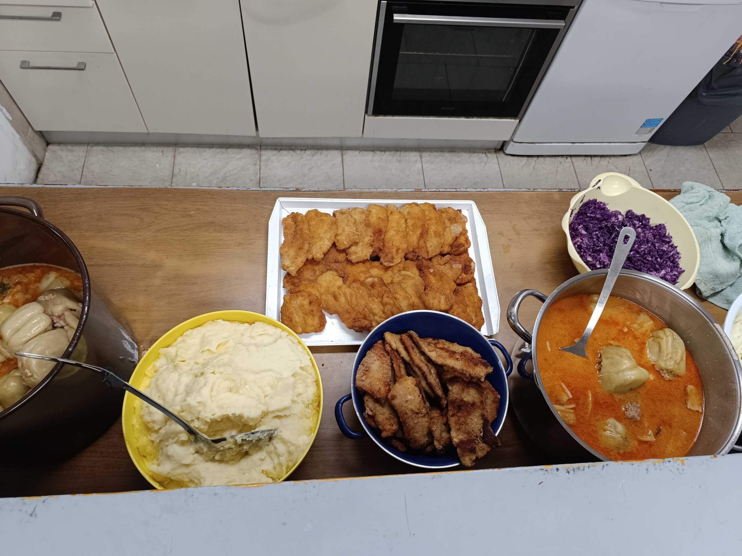 Svoje iskustvo je s nama podijelila i učiteljica koja je kuhala za vrijeme našeg posjeta. Ona je sa svojim kolegicama pripremila punjene paprike, pire krumpir, pohano meso i salatu, ali i desert trokute s jabukama. Otkrila nam je kako je i ranije sudjelovala u akcijama i kako su sretne biti dio toga, a možda će se još koji puta pridružiti i u budućnosti.