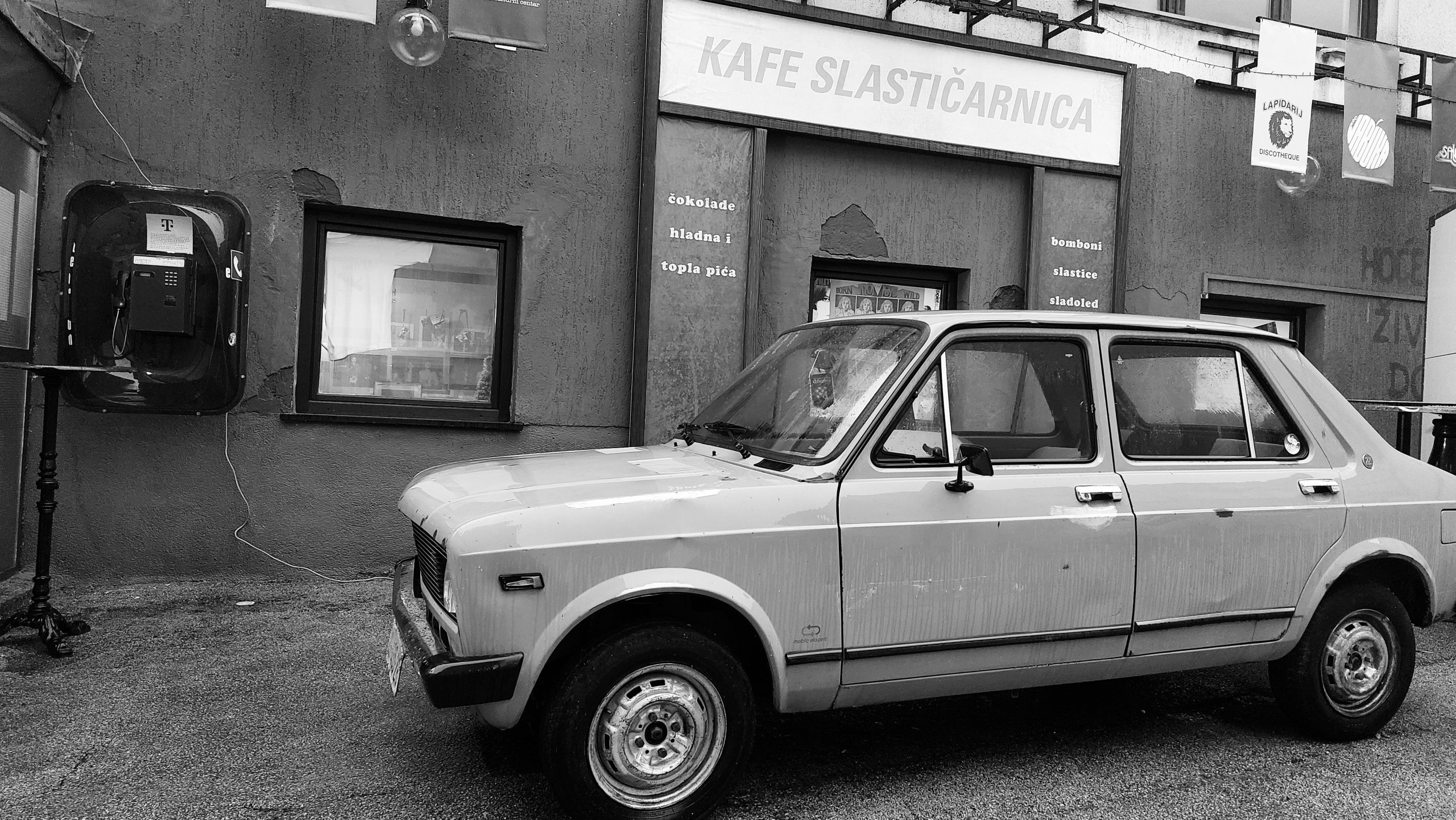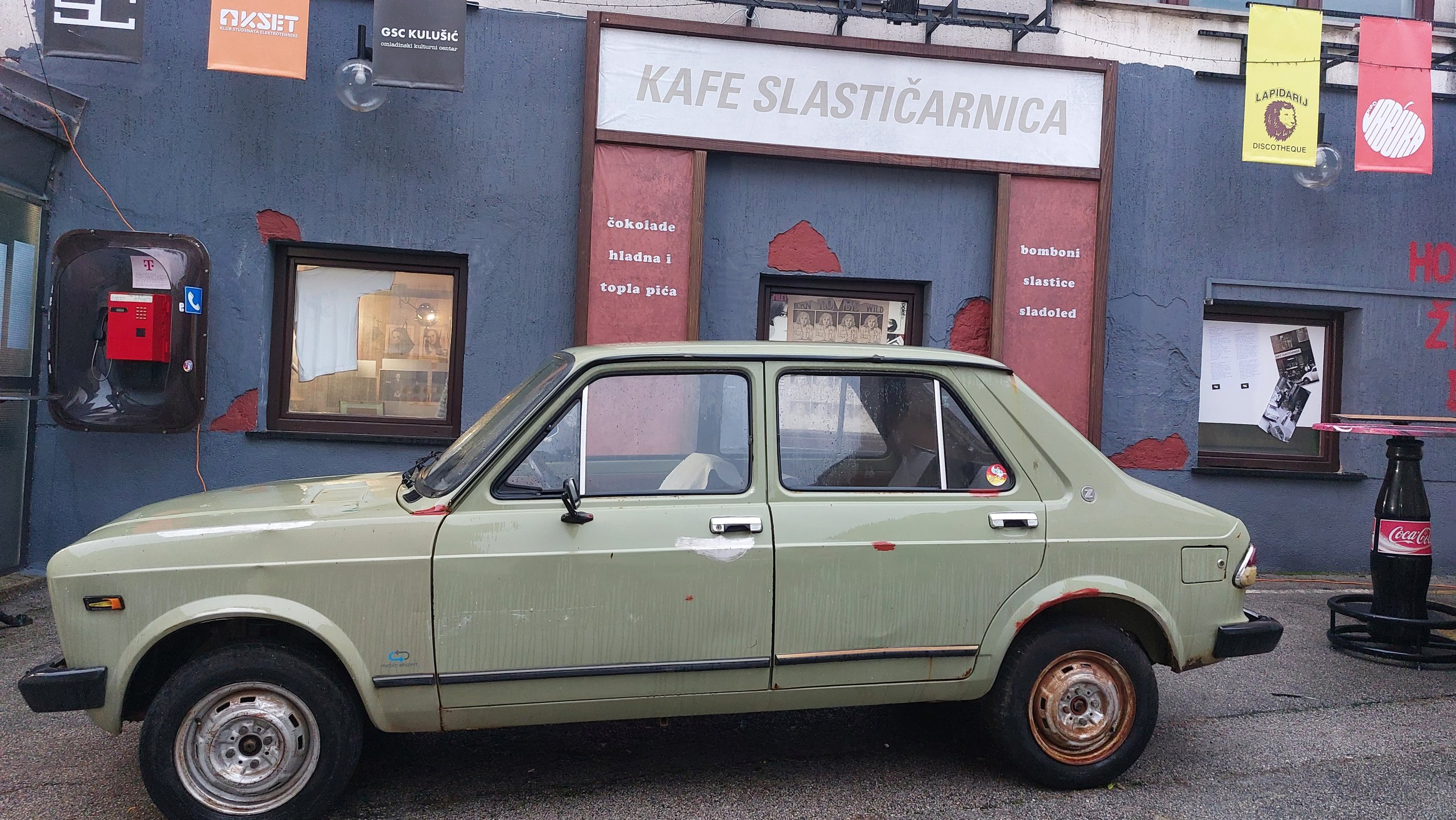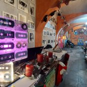 Prostor u dvorištu Vlaške 67 sprijeda je vjerna slika Zvečke, čuvene slastičarnice u Masarykovoj ulici, koja je bila dio svojevrsnog zagrebačkog novovalnog trokuta Zvečka-Blato-Kavkaz u kojem su tada boravili i djelovali razmjenjujući ideje gotovo svi nositelji novog vala, njihove muze i svi koji su to htjeli postati. Da je bilo ljepše vrijeme tijekom našeg posjeta, popili bismo nešto na haubi Stojadina, ali nas je ovako jedan od osnivača i voditelj muzeja Aleksandar Črček ugostio u interijeru, koji svojim bačvastim stropom podsjeća na kultni Lapidarij. No, ovaj je prostor obogaćen brojnim memorabilijama, informacijama o bendovima, a tako i posredno iskustvima i načinom života tadašnjih zvijezda.