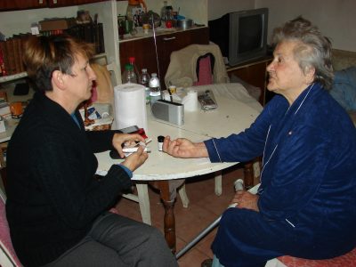 “Tada sam živjela s bakom u Žažini gdje smo brat i ja proživjeli rat skrivajući se u prostoru zidane peći. Gladi nije bilo, kroz selo su prolazile sve vojske, a u našem su dvorištu imali kuhinju. Sjećam se jednog njemačkog vojnika koji me htio posvojiti, toliko me volio da je naredio svome psu da stalno bude uz mene i čuva me, a kada su odlazili, ostavili su nam svu hranu. Otac je bio u partizanima i za njega nismo ni čuli” , prisjeća se Katica koju obiđe te joj izmjeri šećer i Ivančica Velić, volonterka Građanske inicijative „Moj Grad Sisak“.