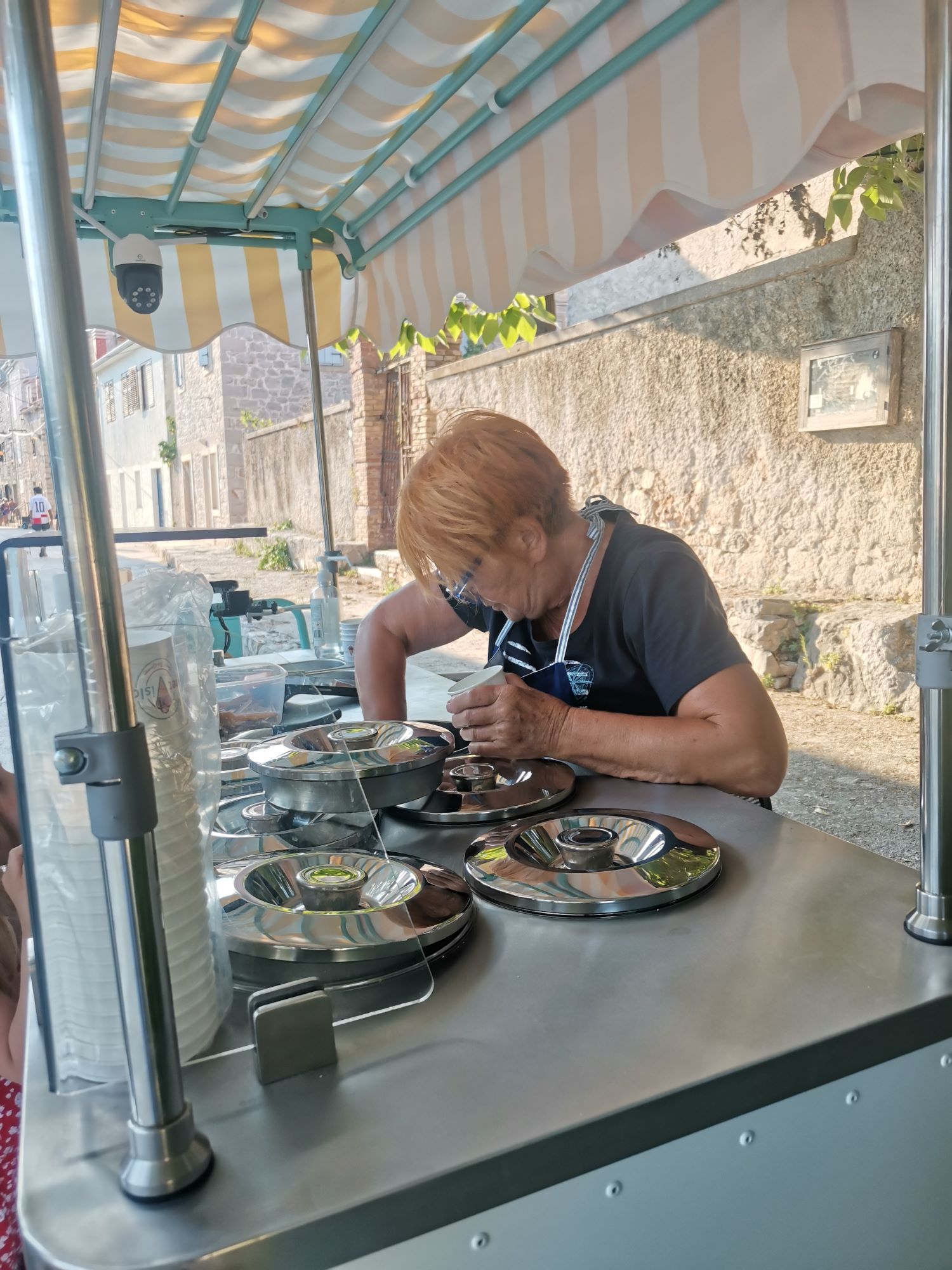 Za šest sladolednih okusa u hladovini ispod dudove krošnje zadužena je 72-godišnja umirovljenica Helena Falco. Rad u mirovini donosi joj dodatni prihod, ali i kontakt s ljudima. Retro tricikl čija škrinja skriva domaće, ručno rađene sladolede, od ovoga ljeta krasi glavnu ulicu otoka Prvića u šibenskom arhipelagu.