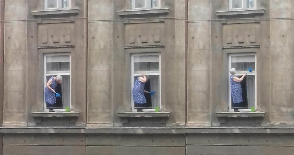 Neustrašiva baka s visine na rubu zgrade u Zagrebu pere prozor