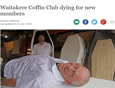 Katie Williams, koja za sebe kaže da je “87 godina mlada”, osnivčačica je novozelandskog Kiwi Coffin Club-a – umirovljeničke udruge koja se bavi izradom specijaliziranih lijesova za ugodan odlazak s ovog svijeta. Svake srijede...