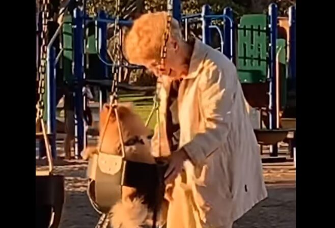 [VIDEO] Pogledajte baku kako ljulja svog psa na dječjem igralištu
