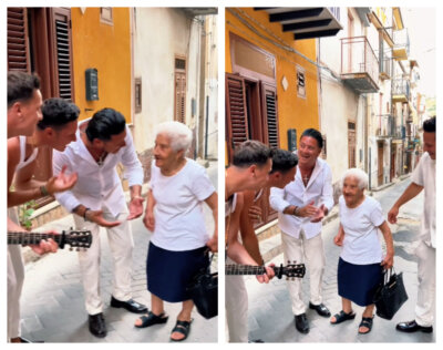 Pri povratku iz grada, umirovljenicu sa Sicilije dočekala su četiri muškarca odjevena u bijelo. Čim su je vidjeli počeli su joj pjevati pjesmu ‘Ti Amo’. Umirovljenica je ostala zapanjena, ali ubrzo je shvatila da je razlog dočeka...